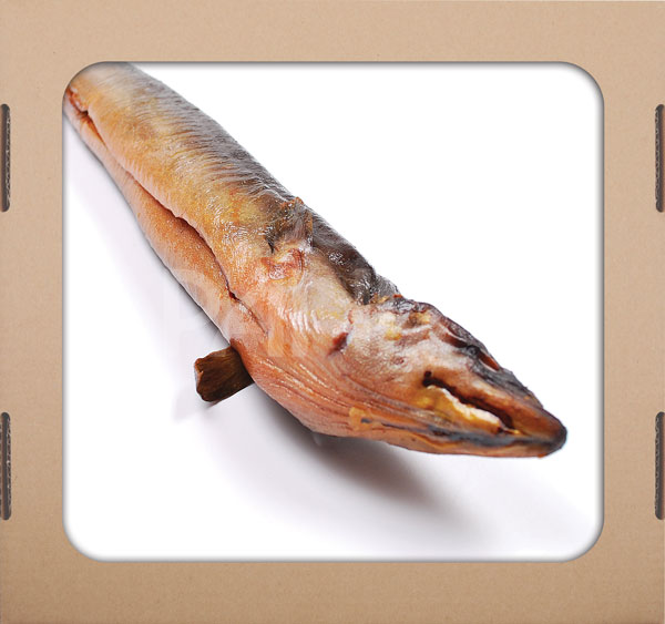 Décapité et évisceré. Poisson<1 kg fumé en une pièce; unité>1 kg (max 5 kg) coupé en morceaux de +/- 400 gram. Salé et fumé naturellement.