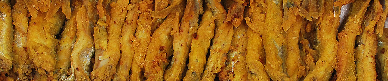 Odgłowiony i wypatroszony śledź, panierowany i smażony;